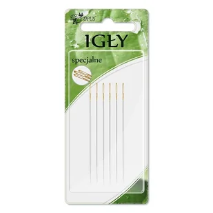 Igły specjalne ze złotym uszkiem do nawlekania korali Karnet 6 igieł ze stali niklowanej o grubości 0,41mm i długości 48mm