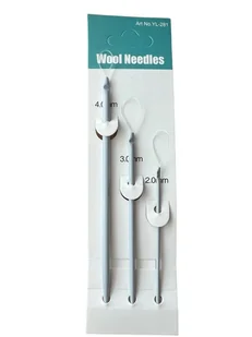 Igły do wełny zestaw 3 szt. Aluminiowe igły dziewiarskie są odpowiednie do każdego rodzaju wełny. Posiadają nylonową pętelkę, przez którą z łatwością przepla...