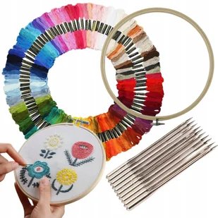 MULINA ZESTAW DO HAFTU 100SZT NICI IGŁY + TAMBOREK ZESTAW DO HAFTU DLA POCZĄTKUJĄCYCH TAMBOREK WYSZYWANIA HAFTOWANIE IGŁY DIY ✅ZESTAW DO HAFTU DLA POCZĄTKUJĄ...
