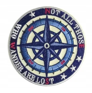 UNIKALNA NASZYWKA, NAPRASOWANKA - RÓŻA WIATRÓW Z CYTATEM Z WŁADCY PIERŚCIENIA: "Nie wszyscy, którzy wędrują, są zagubieni" STAN: NOWY NASZYWKĘ MOŻNA PRZYSZYĆ...