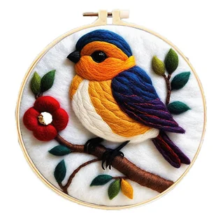 Zestaw do haftowania (filcowania) wełną czesankową - PTASZEK Zestaw DIY do samodzielnego wykonania FILCOWANIE IGŁĄ - to oryginalne hobby, które pozwala tworz...