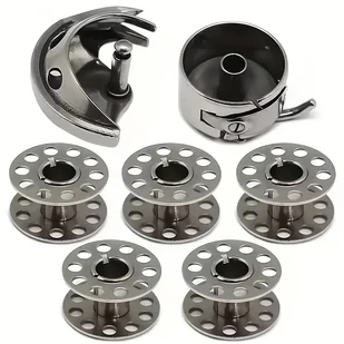 TEMU Zestaw Akcesoriów do Maszyn Do Szycia 7 szt.: Wytrzymałe Metalowe Szpulki, Haczyk i Pojemnik na Szpulkę - Kompatybilny z ADLER, Brother, ,