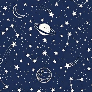 Tkanina bawełniana galaktyka biała na granatowym tle