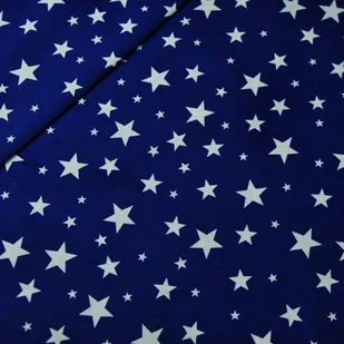 Tkanina bawełniana gwiazdki nowe małe i duże białe na granatowym tle