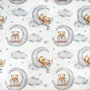 Tkanina bawełniana misie z książkami na szaro fioletowych księżycach