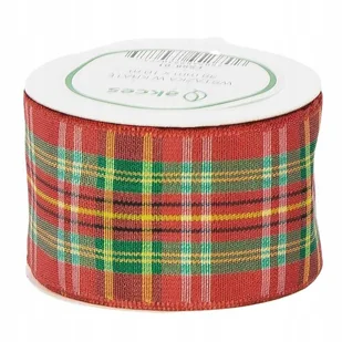 Wstążka w kratkę czerwono-żółto-zielona 38mm 10m Elegancka wstążka, która doda każdemu projektowi wyjątkowego wyglądu. Idealnie sprawdzi się zarówno do zapro...
