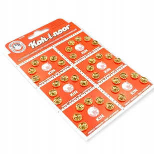 Zatrzaski metalowe złote 8.5/8mm karnet 36 szt. 1 SZTUKA = 1 KARNET (36 ZATRZASKÓW) Metalowe zatrzaski do naszycia sprzedawane w listkach. Proste w użyciu za...