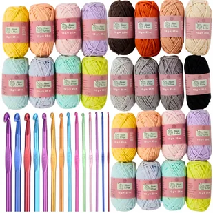 Zestaw 24 Włóczek Bawełnianych + 12 Szydełek do Szydełkowania kolorów etui