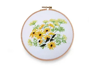 Zestaw do wyszywania, dzięki któremu stworzysz pięknie obrazy kwiatów. Wyszywa się na nadrukowaną tkaninę z pomocą muliny. W zestawie znajduje się tkanina z nadrukiem, zestaw kolorowych mulin, instrukcja obrazkowa i igły do wyszywania. Kółko nie wchodzi w skład zestawu. Zestaw jest zapakowany w mocnej, papierowej kopercie, można go podarować jako prezent.