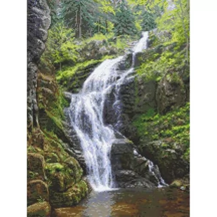 Zestaw do haftu - Górski wodospad - Kamieńczyk Zestaw z muliną zawiera: kanwę czystą typu Aida (100% bawełna) o gęstości 54 oczek/10 cm (14ct), mulinę, igłę oraz kolorowy wzór graficzny. Zestaw nie zawiera ramki. Rozmiar w krzyżykach: 162 x 216 Rozmiar w cm:
