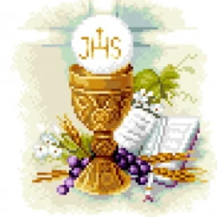 Zestaw do haftu krzyżykowego Skład zestawu: • kanwa z nadrukiem "I Komunia Święta" symbol 5858w rozmiarze 20x20 cm, • 31 motków muliny Ariadna potrzebnych do...