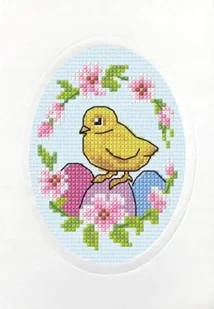 Zestaw do haftu kartka okolicznościowa kanwa mulina - Kurczątko