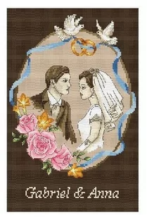 Zestaw do haftu krzyżykowego Skład zestawu: • kanwa z nadrukiem "Młoda para" symbol 4856 w rozmiarze 24x37 cm, • 35 motków muliny Ariadna potrzebnych do wyhaftowania obrazu, • karnet 16 igieł do haftu.
