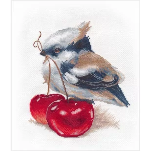Zestaw do haftu - Posiłek dla ptaszka Zestaw do haftu zawiera: kanwę czystą typu Aida (100% bawełna) o gęstości 64 oczek/10 cm (16ct), mulinę firmy Kirov, igłę oraz kolorowy wzór graficzny. Instrukcja w języku angielskim i rosyjskim. Zestaw nie zawiera ramki. Rozmiar w cm:
