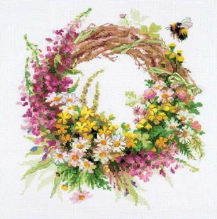 Zestaw do haftu z muliną - Wieniec z wierzbówką Zestaw do haftu zawiera: kanwę czystą typu Aida Zweigart (100% bawełna) o gęstości 54 oczek/10 cm (14ct), mul...