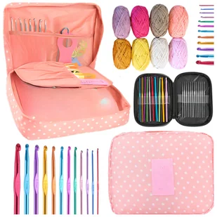 Zestaw do Szydełkowania w Etui Szydełka 100 el + 10 Włóczek Bawełnianych