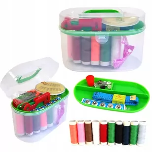 ZESTAW KRAWIECKI NICI IGŁY DO SZYCIA W PUDEŁKU Zestaw zawiera: 10 kolorowych nici Kompaktowe opakowanie igieł w plastikowym pudełku Naparstek Zestaw agrafek Obcinak 3 guziczki Szczypce Centymetr krawiecki Całość pakowana w przezroczyste pudełko Wymiary pudełka: 14,5 cm x 9,5 cm Mix kolorów wybierany losowo.