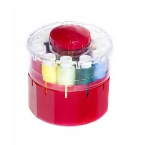 Zestaw nici AGA Ilość: 12 kolorów ( 12 szpulek ) Długość nici na jednej szpulce 70 mb. Materiał : nici poliestrowe Zastosowanie: Zestaw AGA to nici w podstawowych kolorach do użytku domowego. Wygodne pudełko nie zajmuje dużo miejsca, oraz każda szpulka ma swoje miejsce przez co nitki nie będą się plątać.