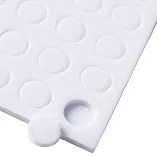 Opis: Taśma dwustronna Kolor: Biały Ilość sztuk w opakowaniu: Jeden blister, sto kółeczek Wymiary: Średnica: 6mm Grubość: 1mm