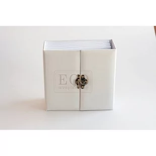 Pojemny album, gotowy do ozdabiania i wklejania zdjęć. Posiada 6 gładkich kart z białego kartonu o gramaturze 300g. Okładka wykonana jest z tektury o grubości 2mm, oklejonej białym płótnem. Pomiędzy kartami znajduje się przestrzeń około 8mm, dzięki której w środku można pomieścić wiele wypukłych dekoracji. Wymiary albumu: