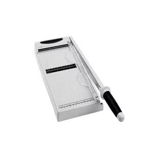 Wysokiej jakości poręczna gilotyna do papieru. Wygodna rączka i mocne ostrze ze stali nierdzewnej ułatwią pracę nad każdym projektem. Dodatkowo dopinana linijka poszerza rozmiar papieru, który można ciąć, do 31cm, jednocześnie zachowując bardziej kompaktowy rozmiar całej platformy gilotyny. Długość cięcia: 31cm Wielkość platformy (bez dokładanej linijki):