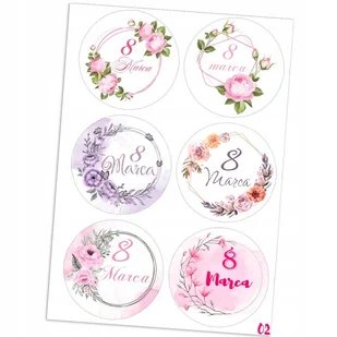 Naklejki Etykietki Na 8 Marca Dzień Kobiet 6 Szt 4,5 Cm Wzory