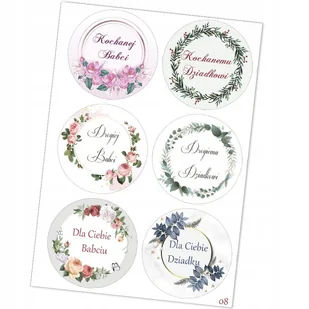 Naklejki Etykietki na Dzień Babci i Dziadka Rozmiar arkusza A6 / 105*148 см Naklejki samoprzylepne ponacinany w kółeczka, średnica każdej z naklejek to ok 4,...