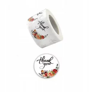 Naklejki Ozdobne Okrągłe Białe Thank You 100 Szt.