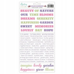 Naklejki papierowe 15x30 Mintay - Lilac Garden - Słowa angielski Arkusz papierowych, samoprzylepnych elementów. Białe tło. Bardzo mocny klej. Satynowe wykońc...