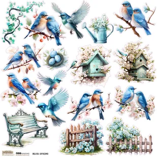 NAKLEJKI PAPIEROWE 24x24 ScrapLove Blue Spring ptaszki