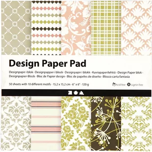 Bloczek papieru jednostronnego we wzory. Papier nie ma w składzie kwasów i ligniny, nadaje się do scrapbookingu. W bloczku znajduje się 50 arkuszy (10 wzorów po 5 arkuszy). Wymiary arkusza: 15,2x15,2 cm.