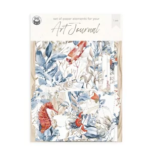 Journalowe zestawy z papierami i kieszonkami dociętymi na wymiar naszych zeszytów w rozmiarze travel (11x21). Staraliśmy się całość zaprojektować tak, by można było korzystać z nich w formie podwójnej rozkładówki, jak i miksując ze sobą strony. Kieszonki i narożniki bardzo dobrze sprawdzą się w albumach lub wnętrzu kartki, gdy potrzeba kieszonki na banknoty. Opakowanie stanowi etykieta wykonana z tego samego papieru co nasze arkusze papieru do scrapbookingu, z nadrukowanym na spodzie wzorem – może być w całości wykorzystana w pracach. Zobacz również inne elementy kolekcji - SEA LA VIE!
