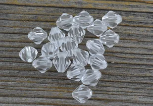 Opis: Koraliki w kształcie kryształków Kolor: przeźroczysty Materiał: akryl Ilość sztuk w opakowaniu: pięćdziesiąt Wymiary: Długość: 8mm Szerokość: 7mm Wielk...