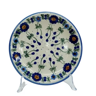 D40 [wys]Wysokość: 2,1 cm [szer]Szerokość: 19,2 cm [waga]Waga: 0,4 kg Opis: Przedstawiamy prawdziwy hit wśród wyrobów ceramiczny, topowy produkt ceramiki bolesławieckiej – talerz deserowy o średnicy 19 cm.
