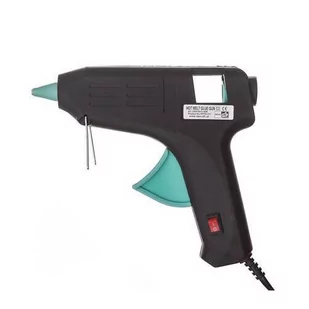Pistolet do kleju na gorąco z włącznikiem jest niezastąpionym urządzeniem do pracy w domu, garażu, warsztacie. Polecany zarówno do drobnych napraw jak i do tworzenia przedmiotów dekoracyjnych. W bardzo łatwy, szybki i precyzyjny sposób umożliwia łączenie elementów bez potrzeby oczekiwania na zaschnięcie kleju. Idealny do klejenia elementów wykonanych z różnych materiałów. Lekki i łatwy w obsłudze. Ergonomiczny kształt sprawia, że pistoletem wygodnie się pracuje. Włącznik to dodatkowy atut tego modelu, dzięki temu nie musimy wyłączać pistoletu z gniazdka za każdym razem, kiedy go nie używamy, a jedynie kliknąć włącznik.