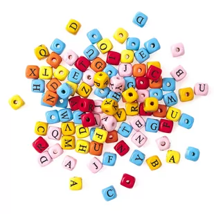 Drewniane Koraliki Kolorowe, Litery, 100 Szt. Dpcraft