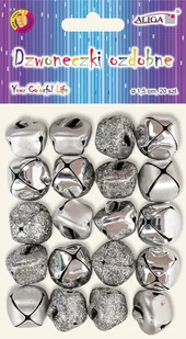 Metalowe dzwoneczki - zawieszki doskonałe do tworzenia projektów: wystrój pomieszczeń, wygląd kartek, zaproszeń innych ozdób. Kolor: srebrny Zastosowanie: rękodzieło Rozmiar: 1,5 cm. W skład zestawu wchodzi: