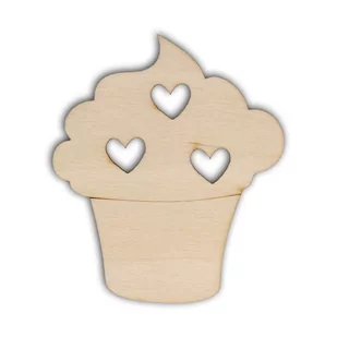 dekor do zdobienia techniką decoupage może być używany również jako gotowy produkt materiał: sklejka wzór: babeczka z serduszkiem wymiary: 90 x 76 mm grubość: 3 mm