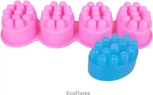 Forma silikonowa Masażer 4 szt na formie Foremka silikonowa wykonana z trwałego, elastycznego silikonu do wykonywania odlewów z bazy mydlanej, odlewów świec oraz odlewów z gipsu. Wymiary całej formy silikonowej : szerokość 28,5 cm x głębokość 10 cm x wysokość 5 cm Z formy można jednocześnie wykonać 4 odlewy. Wymiary wykonanego pojedynczego odlewu : szerokość 8,4 cm x głębokość 6 cm, wysokość 4,5 cm Waga pojedynczego odlewu: