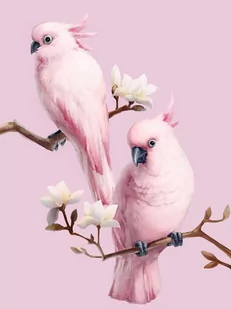 okrągłe Kompletny zestaw do samodzielnego układania mozaiki. Zawiera wszystkie elementy niezbędne do samodzielnego wyklejenia obrazu. Haft diamentowy – papugi Motyw zwierząt jest jednym z najchętniej wybieranych tematów oferowanych przez nas obrazów w technice haftu diamentowego. Papugi uchwycone na gałęzi to dwie kakadu różowe w towarzystwie kwiatów magnolii. Wygląd gotowego obrazu jest szczególnie intrygujący i przyjemny ze względu na kolory – ciepłe, delikatne odcienie różu, z odrobiną brązu i bieli.