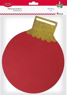 Zawieszka w kształcie bombki. Kolor: czerwono-złota. Wymiary: 218 x 179 mm. Ilość: 4 szt. w opakowaniu.