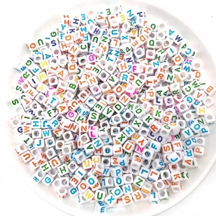 Zestaw akrylowych koralików w kształcie kostki z kolorowymi literkami Idealne do tworzenia kolorowych bransoletek z napisami, a także jako dodatek do prac rę...