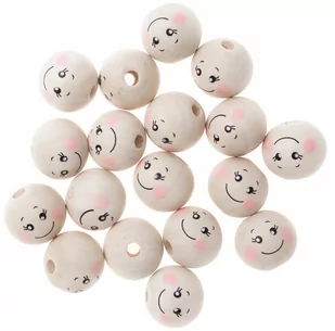 Koraliki drewniane kulki, buźki - naturalne, 40 g Drewniane koraliki z uśmiechniętymi buźkami stanowią idealny dodatek do samodzielnie tworzonych dekoracji. Będą doskonałe do figurek, zabawek, dziecięcej biżuterii, ozdób, breloczków, makram i innych projektów DIY. Te drewniane koraliki z buźkami będą również idealne do tworzenia makramowych laleczek i aniołków. KOLOR: naturalny ROZMIAR:
