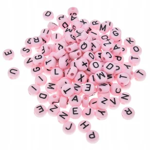 Zestaw akrylowych okrągłych koralików z czarnymi literkami 100 sztuk Idealne do tworzenia kolorowych bransoletek z napisami, a także jako dodatek do prac ręk...