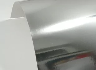 Mirror RODZAJ WYKOŃCZENIA: Powlekane ILOŚĆ: 10 arkuszy Jednostronnie powleczony karton wylewany o wysokim srebrnym połysku, na matowym białym spodzie. Pozwala na uzyskanie doskonałego kontrastu, odwzorowanie szczegółów, mieszanie barw. Jest odporny na ścieranie.