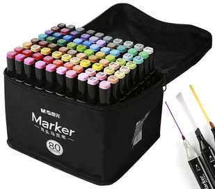 Zestaw składający się z 80 markerów artystycznych i materiałowego etui! Dwustronne markery z tuszem na bazie alkoholu Idealnie sprawdzają się jako markery artystyczne, szkicowe, permanentne Odporne na rozmazywanie na wielu powierzchniach Do użytku na papierze, ceramice, szkle, plastiku Szybkoschnące Grubość linii pisania: 3,2 mm i 6,2 mm Zestaw 80 kolorów Wygodne materiałowe etui z rączką, zapinane na zamek Idealny zestaw dla hobbystów, profesjonalistów i amatorów Wymiary zestawu (etui): 18x15x15 cm