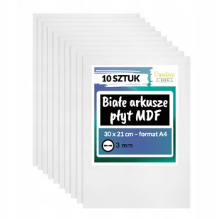 Płyty MDF do cięcia laserem 300 x 210 x 3 mm - format A4 Opis produktu: 10 arkuszy Rozmiar arkusza - ok. 300 x 210 x 3 mm Waga: 0,164 kg na arkusz Materiał: MDF Kolor: biały IDEALNY ROZMIAR - Każdy arkusz ma rozmiar 3mm x 210mm x 300mm - rozmiar kartki A4.
