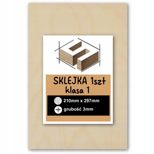 Sklejka A4 o wymiarach 3mm 210x297 mm - 1 szt. – Brzozowa, Idealna do Lasera, CNC i Grawerowania Sklejka 3 mm suchotrwała, Wymiary: 210 x 297 mm, Klasa I Pot...