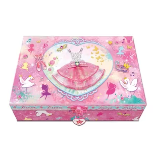 Szkatułka z akcesoriami - Sukienka baletnicy Pecoware 176DD Zestaw zawiera: mini notesik, długopis z ozdobą (serduszkiem), zestaw naklejek 3D z ubrankami i akcesoriami do tańca, zestaw kolorowych kamyków, trzy flamastry, kluczyki do kłódki. Zestaw zapakowany w ozdobną szkatułkę. Szkatułka wykonana jest ze wzmocnionej tektury. Zamykana jest na małą kłódkę.