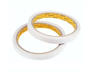 Taśma składa się z bibułkowego nośnika nasączonego i dwustronnie laminowanego klejem akrylowym. Elastyczny nośnik umożliwia aplikację na chropowatych powierzchniach. Kawałki taśmy z łatwością odrywa się bez konieczności używania nożyczek. Dzięki wyjątkowo małej grubości, taśma świetnie sprawdza się przy produkcji elektroniki, a także przy docinaniu i podklejaniu cienkich i delikatnych materiałów. Doskonale sprawdza się także przy pracach introligatorskich oraz w papierniach i drukarniach.